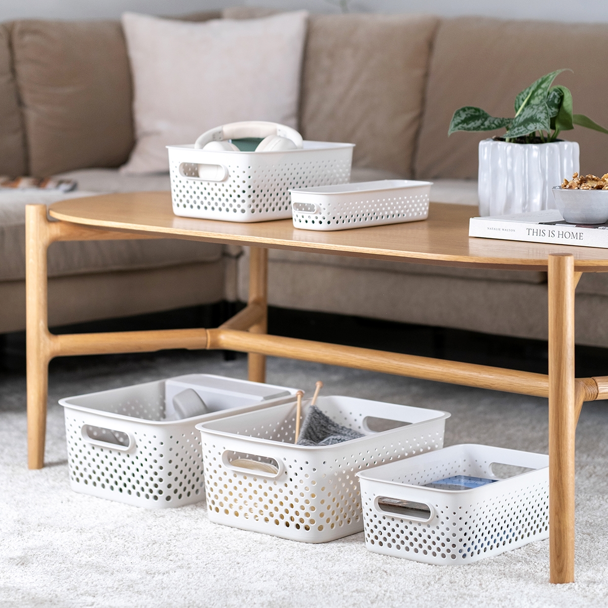 SmartStore Essence er en serie af kurve i genbrugplast i et design med huller, så du kan se indholdet.