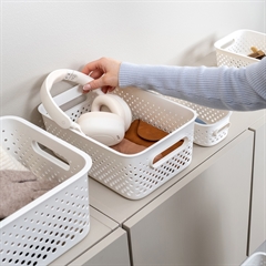 SmartStore Essence er en serie af kurve i genbrugplast i et design med huller, så du kan se indholdet.