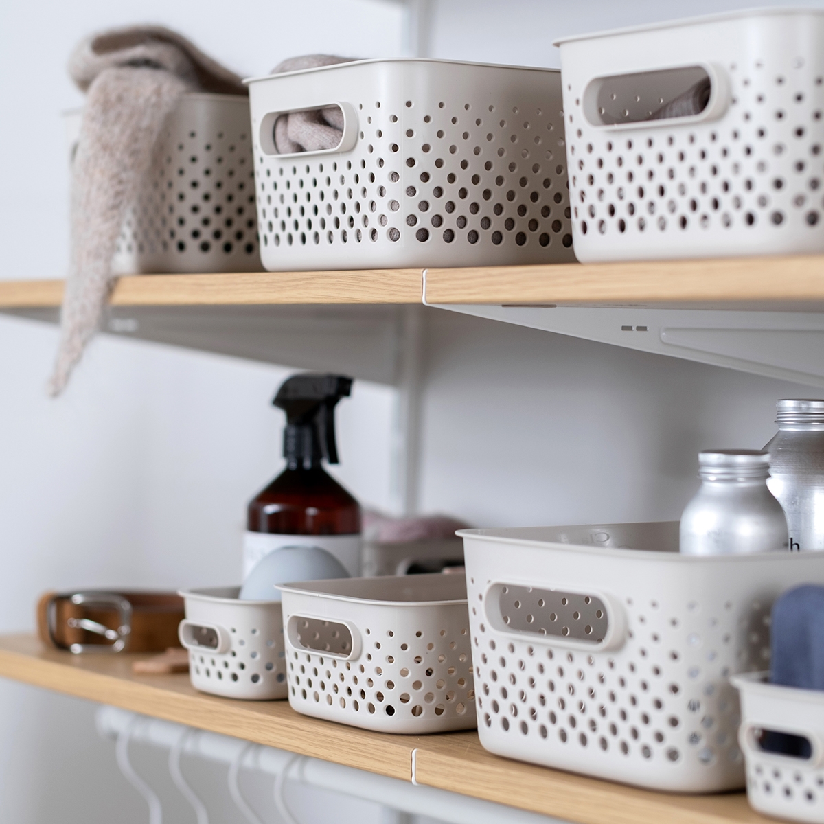 SmartStore Essence er en serie af kurve i genbrugplast i et design med huller, så du kan se indholdet.