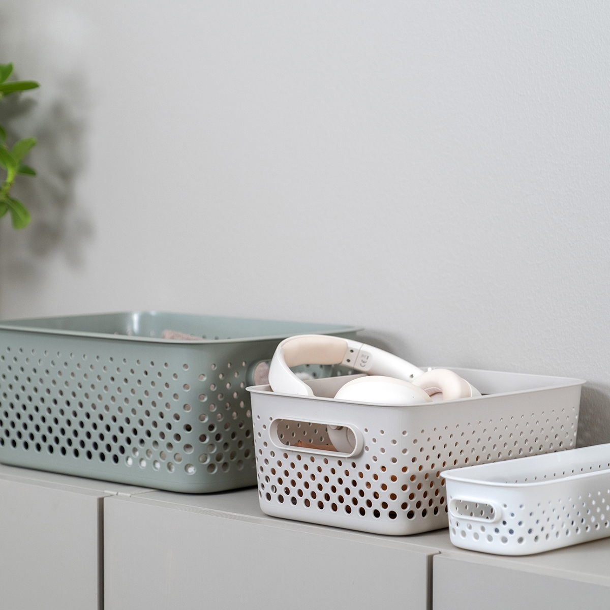 SmartStore Essence er en serie af kurve i genbrugplast i et design med huller, så du kan se indholdet.