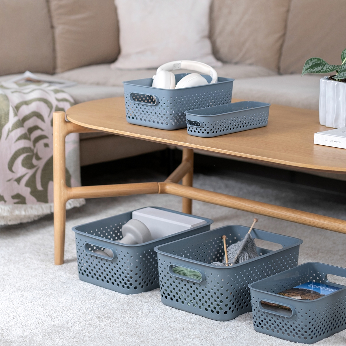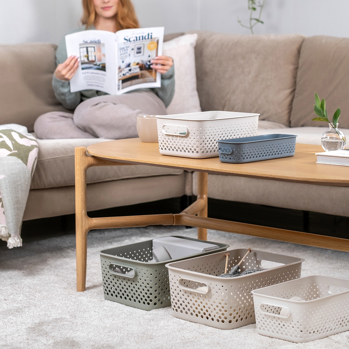 SmartStore Essence er en serie af kurve i genbrugplast i et design med huller, så du kan se indholdet.