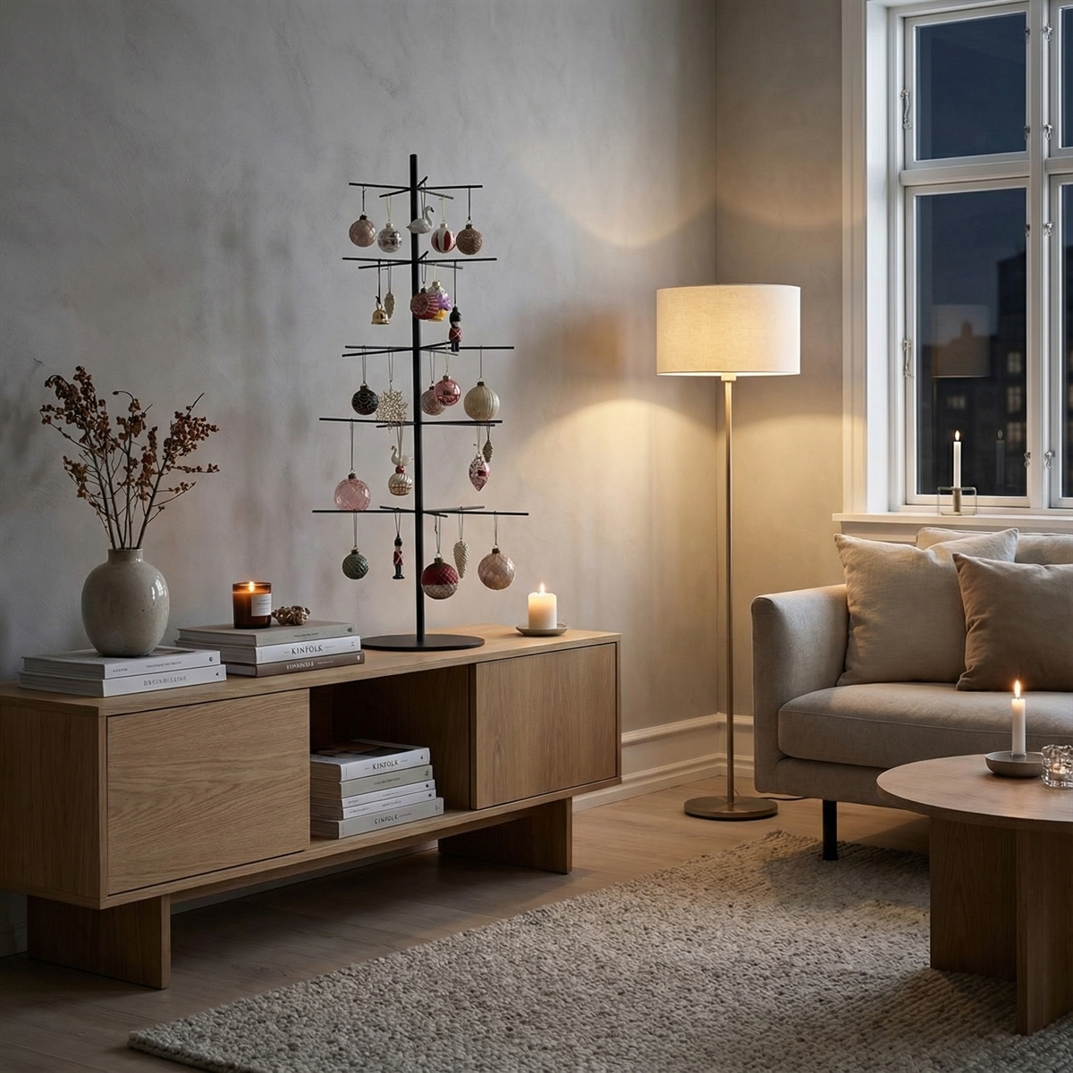Du kan dekorere træet med grangrene, lyskæder, smukke julekugler og meget mere og lave din helt personlige juledekoration i hjemmet.