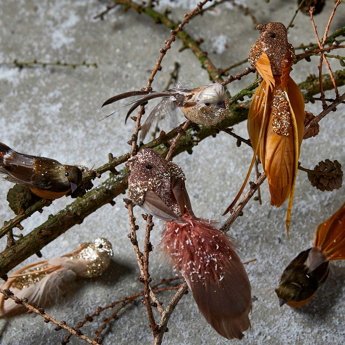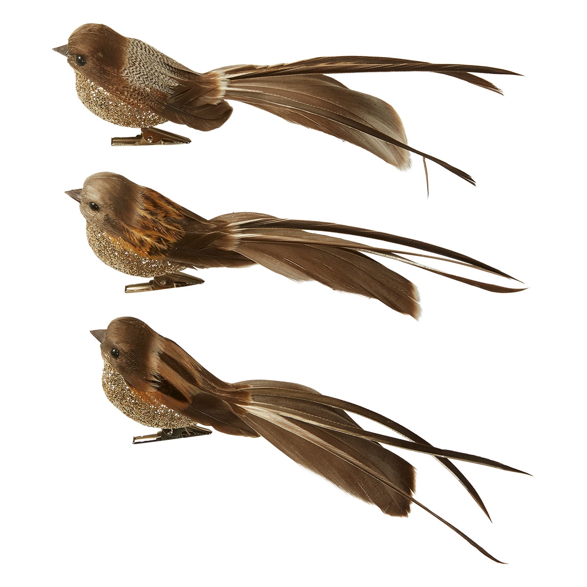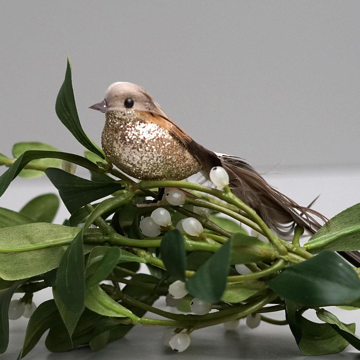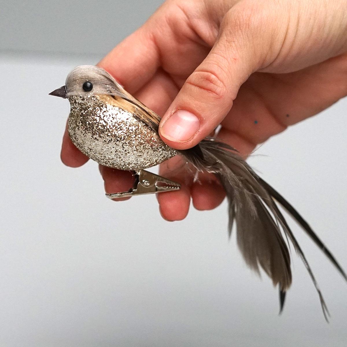 De små dekorationsfugle har en lille clips som fødder så du kan sætte de fine fugle i en blomst, buket eller brug dem som pynt på bordet eller i en skål. Varierer lidt i mønsteret på ryggen.