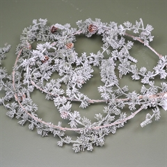 Kunstig guirlande i gran på 180 cm. Denne guirlande minder om cedertræ og har masser af små fine kogler på. Guirlanden er drysset med "sne" for at give den det helt rigtige vinterlook.