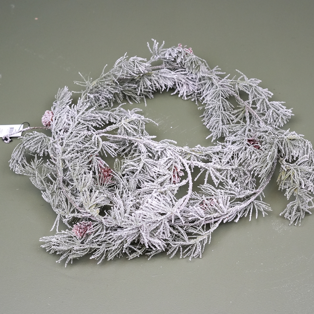 Kunstig guirlande i gran på 170 cm. Denne guirlande minder om alm gran og har masser af små fine kogler på. Guirlanden er drysset med "sne" for at give den det helt rigtige vinterlook.