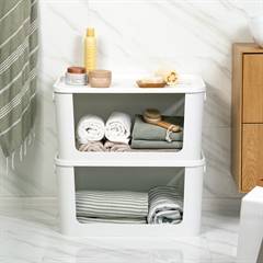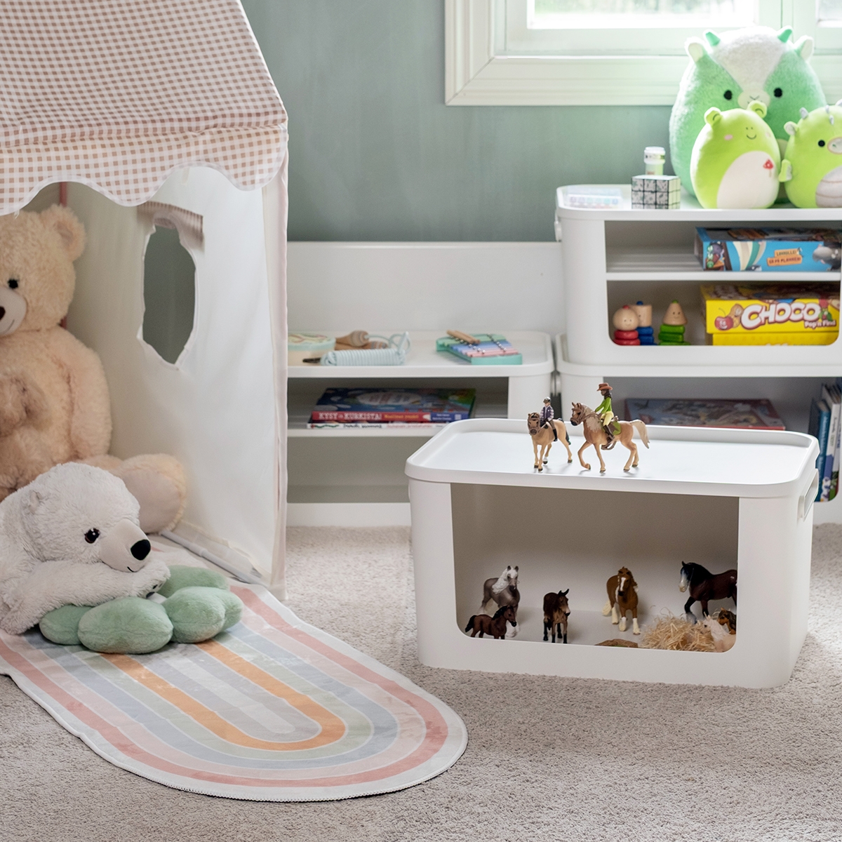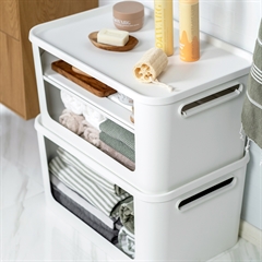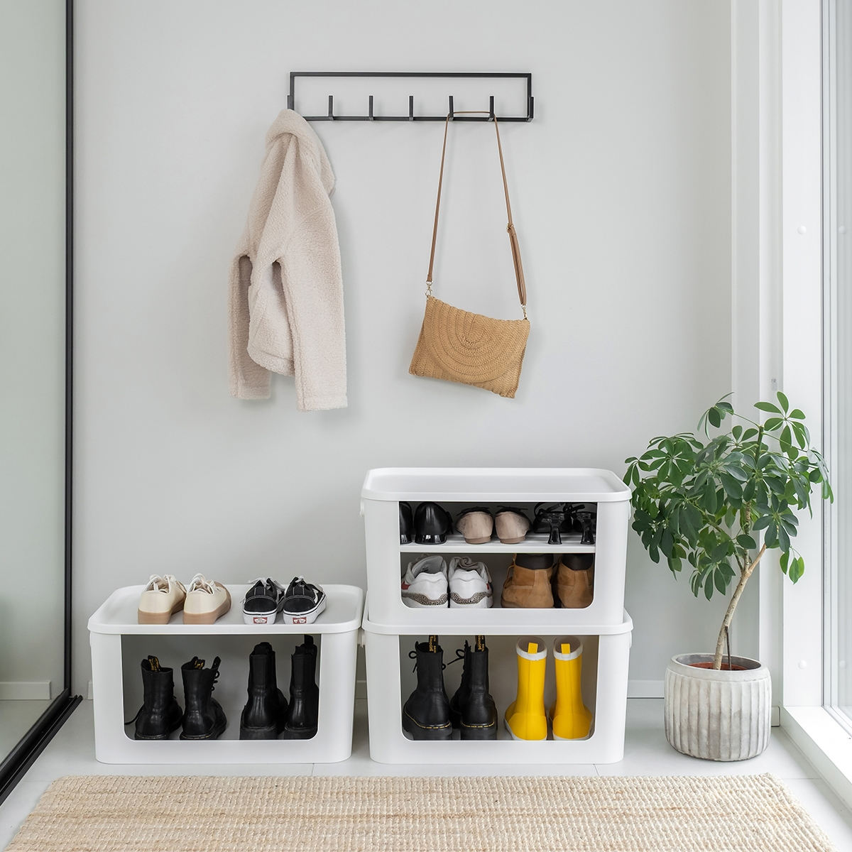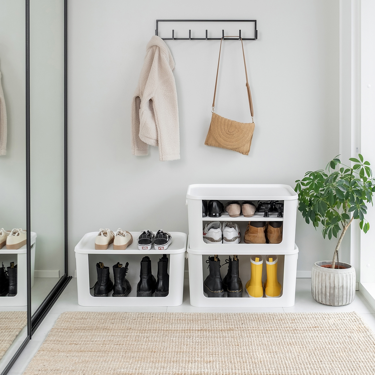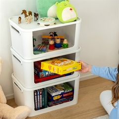 Åben box med låg i plast du kan bruge til opbevaring, hvor det skal være nemt at komme til. Tænk skoreol, vasketøj, legetøj, sæsontøj osv.