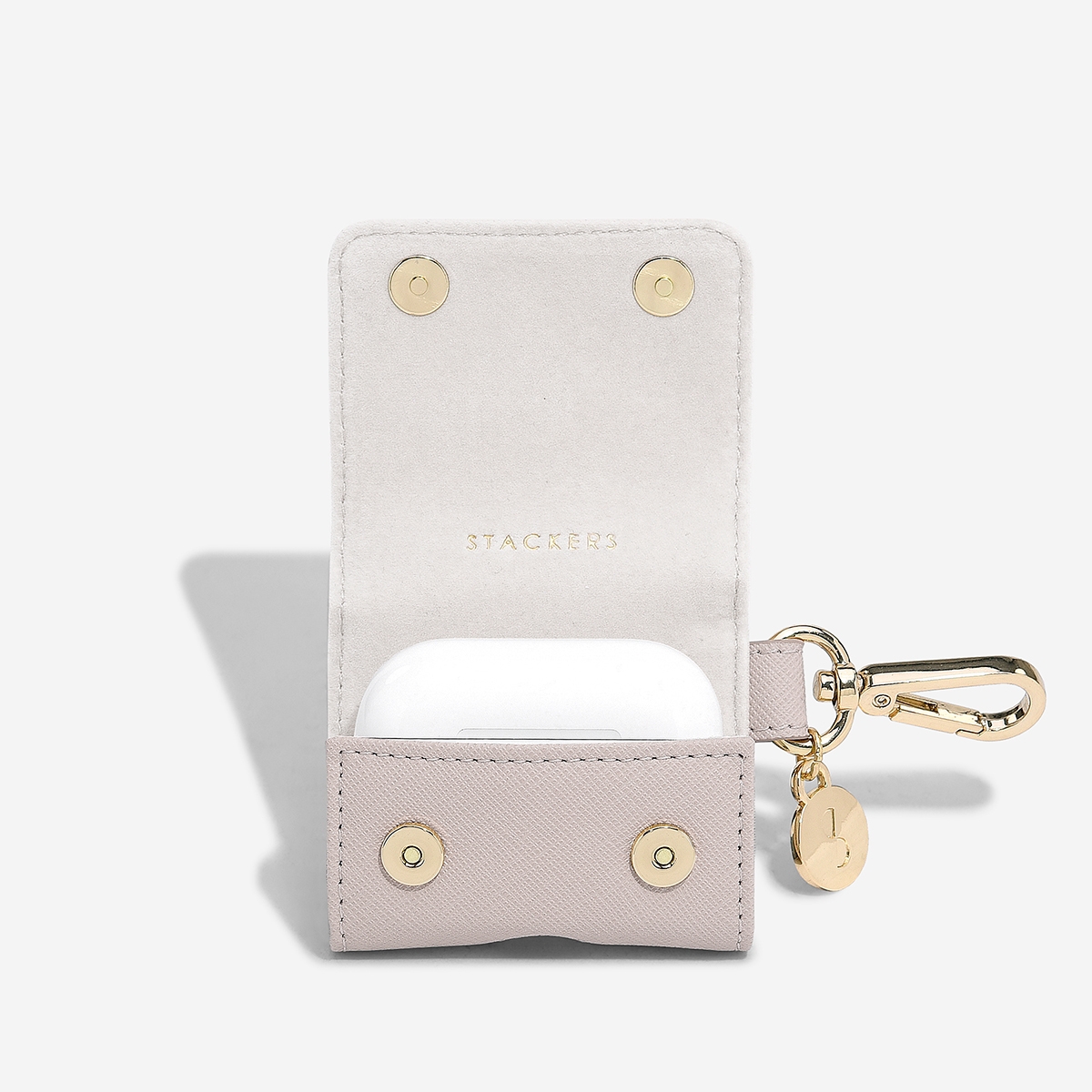Smart lille case fra Stackers til opbevaring af dit airpod etui, så det har en fast plads i tasken og mulighed for at clipse det fast