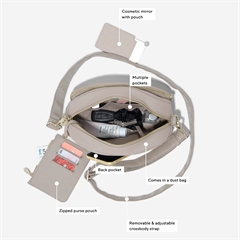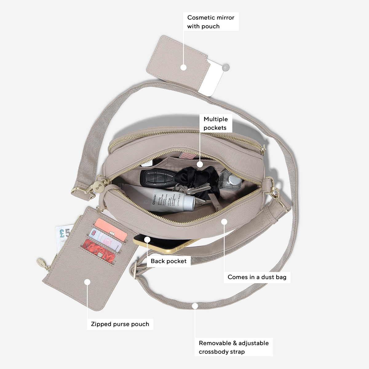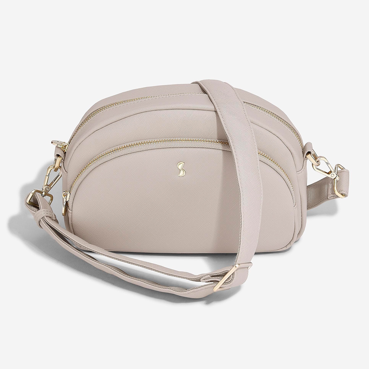 Stilren cross body bag i taupefarvet imiteret læder fra Stackers. En skøn taske til dig der elsker taster med mange rum og mulighed for at organisere dit indhold perfekt.