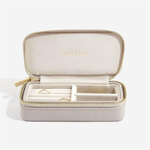 Stackers rejsesmykkeskrin i en lækker taupe/beige-grå farve.