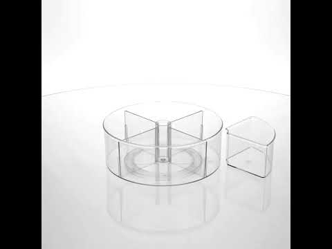 Drejefad med høj kant og ruminddeling til opbevaring og organisering i hjemmet. Lazy Susan fra The Home Edit by IDesign. Drejefadet har et kraftigt kugleleje og drejer rundt, når du skubber.