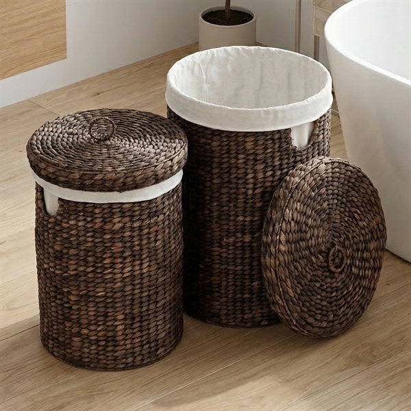 Vasketøjskurve - sæt m. 2 stk. i vandhyacint. Rund - MØRK
