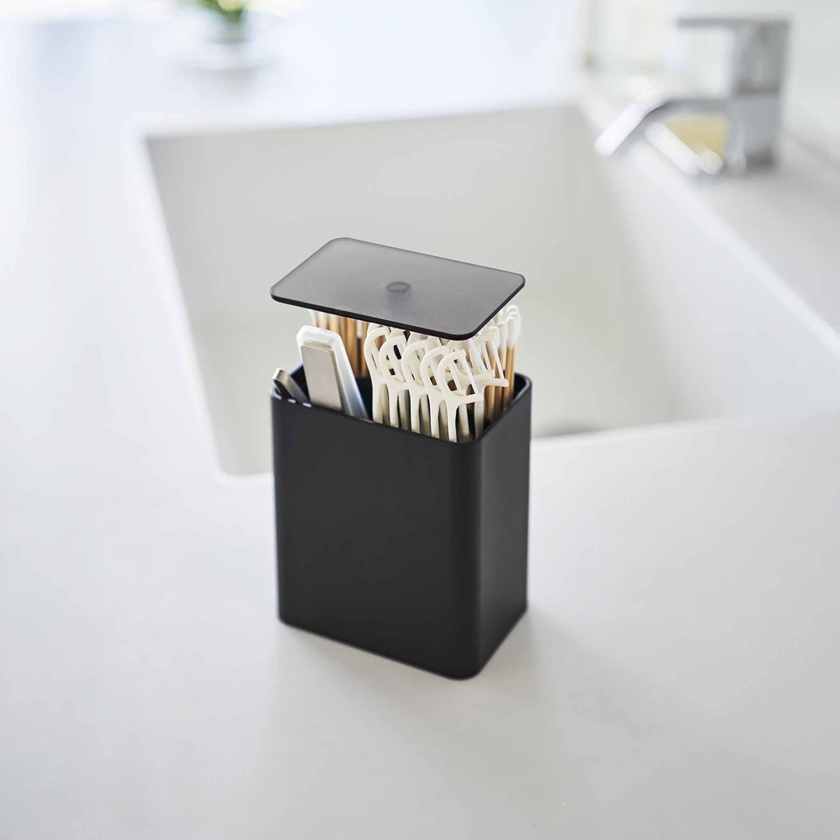Beholder til vatpinde i et stilrent design fra Yamazaki.