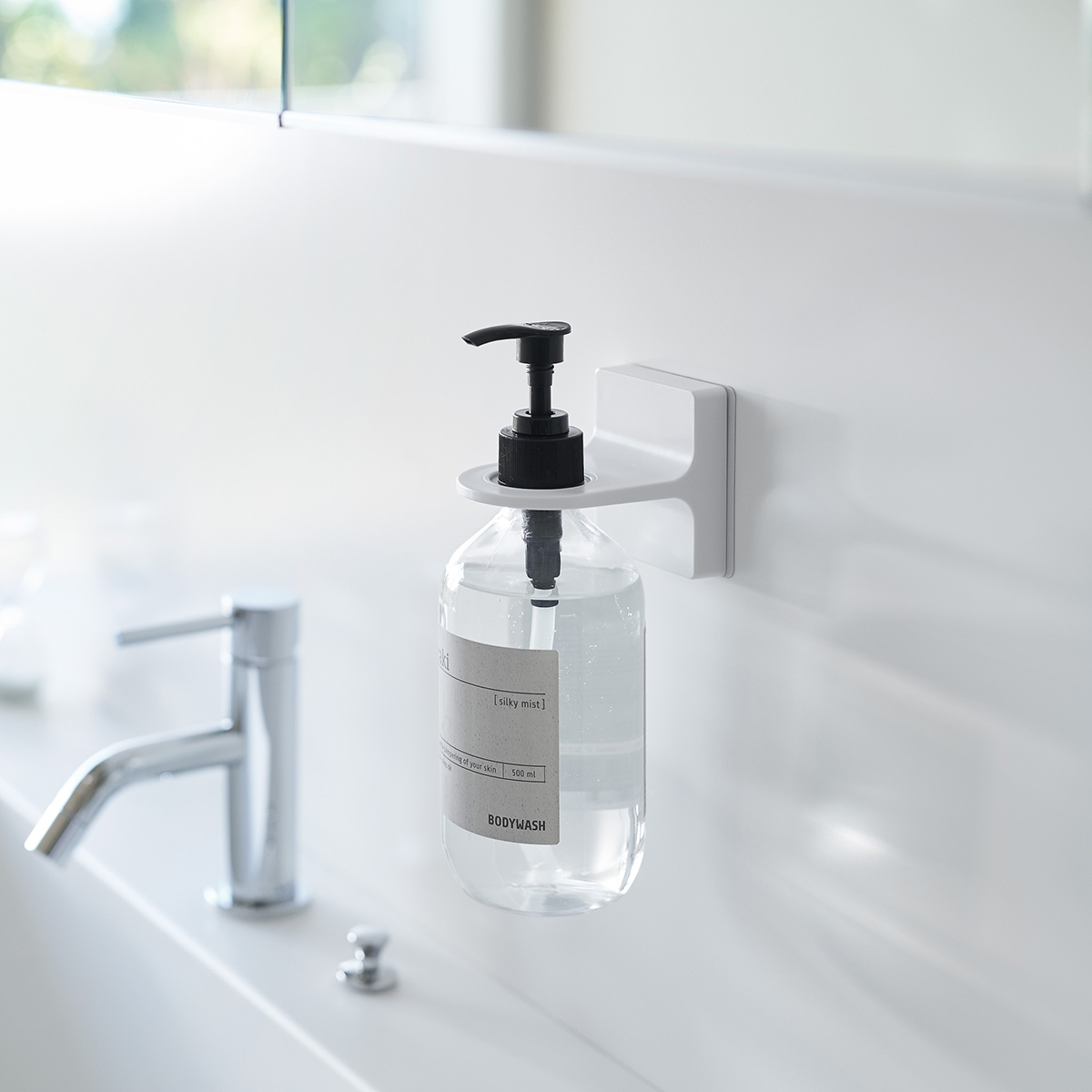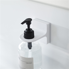Yamazaki selvklæbende holder til sæbeflasker i hvid plast.