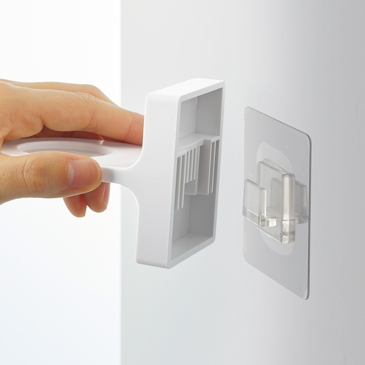 Holderen sættes op med Yamazakis "FILM" metode med et klart klistermærke der monteres på en glat rengjort overflade i hjemmet.