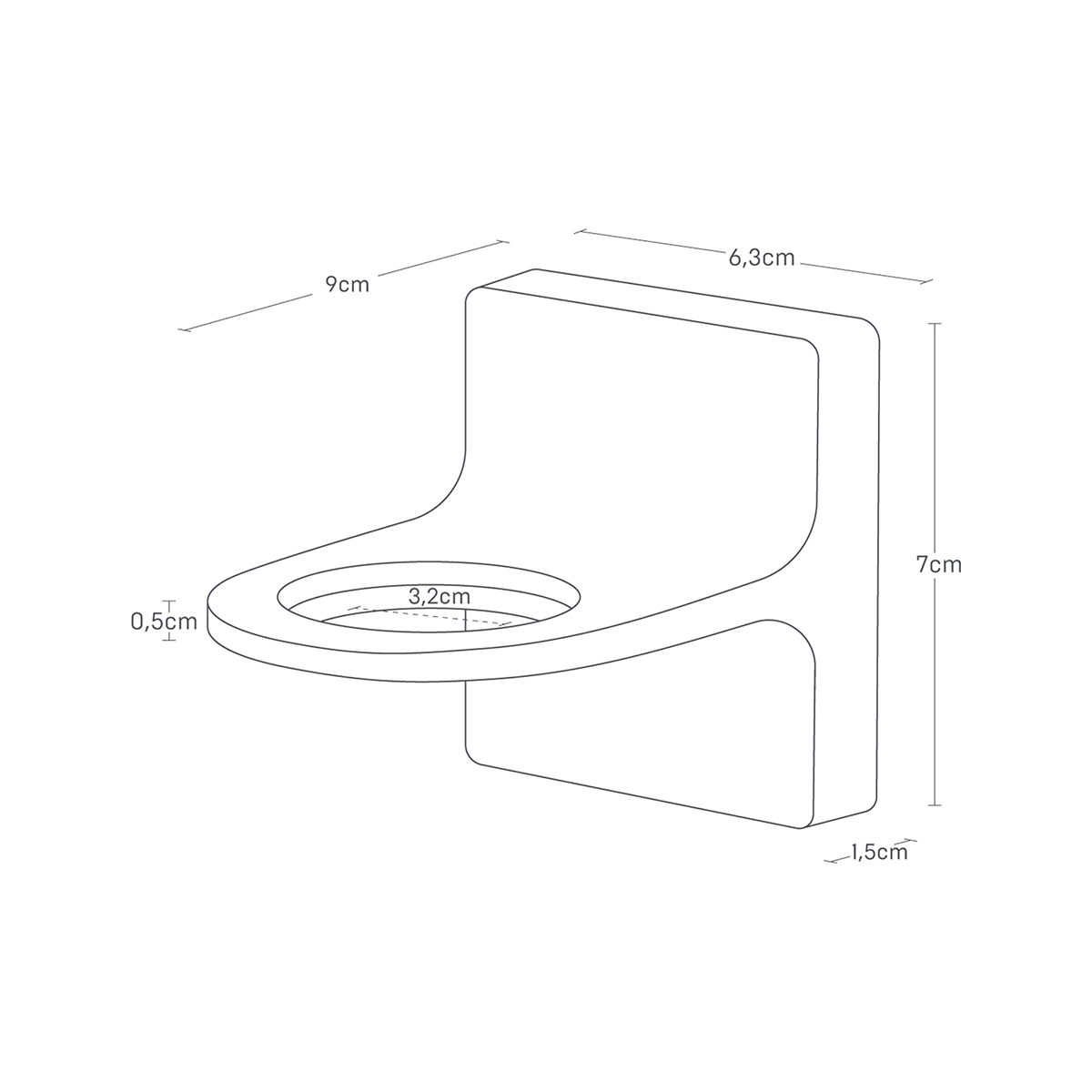 Hullet måler 3,2 cm. i diameter og kan holde ting der måler fra 2,4 cm. til 3,2 cm. Flaskestørrelse: Max 9 cm i diameter.
