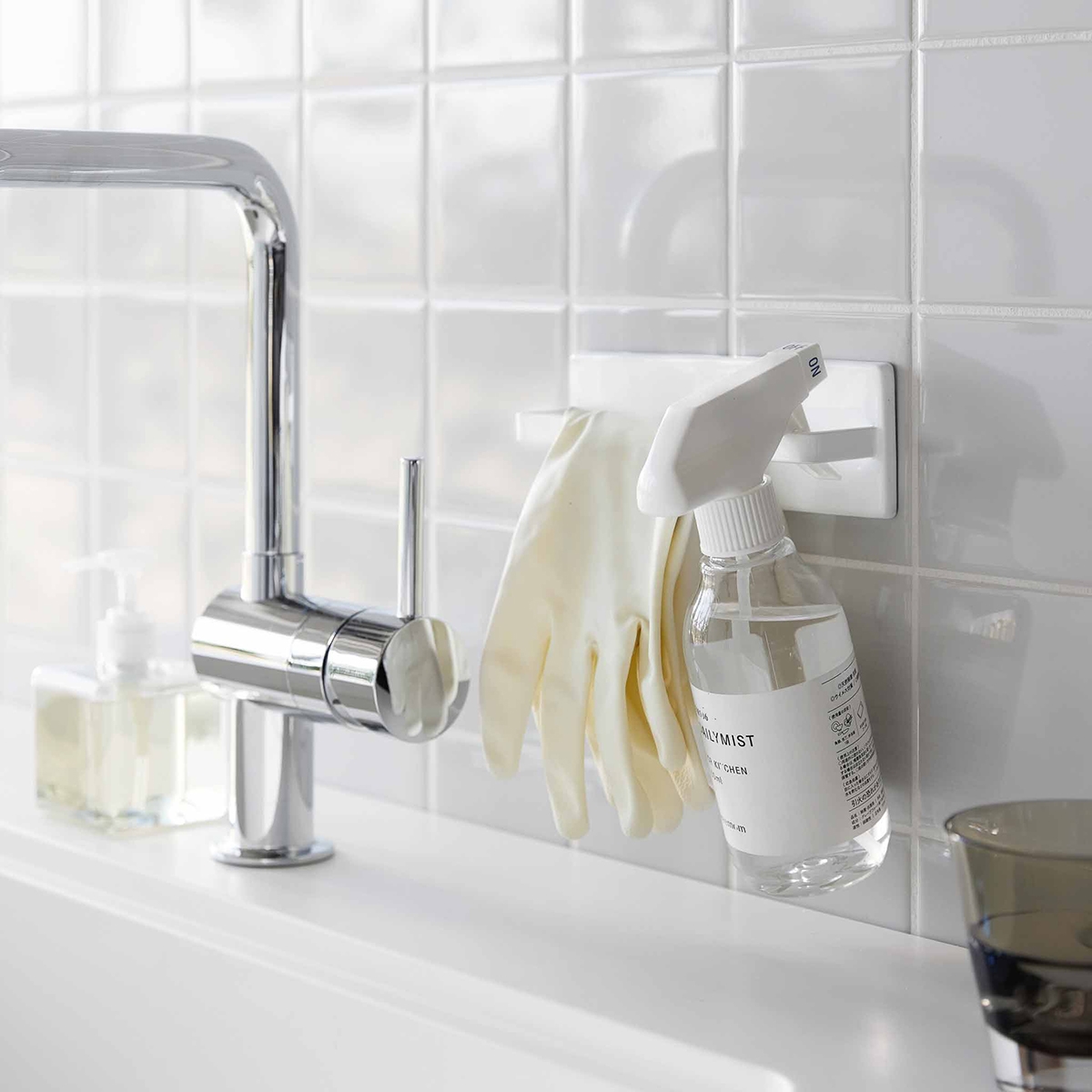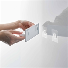 Holderen sættes op med Yamazakis "FILM" metode med et klart klistermærke, der monteres på en glat rengjort overflade i hjemmet.