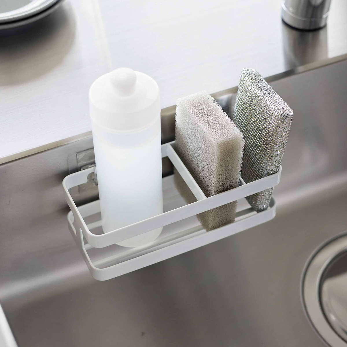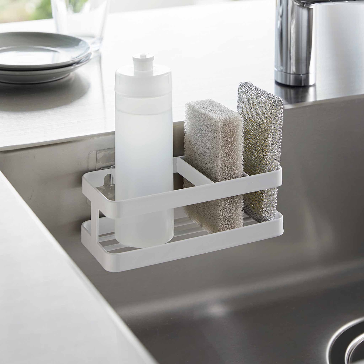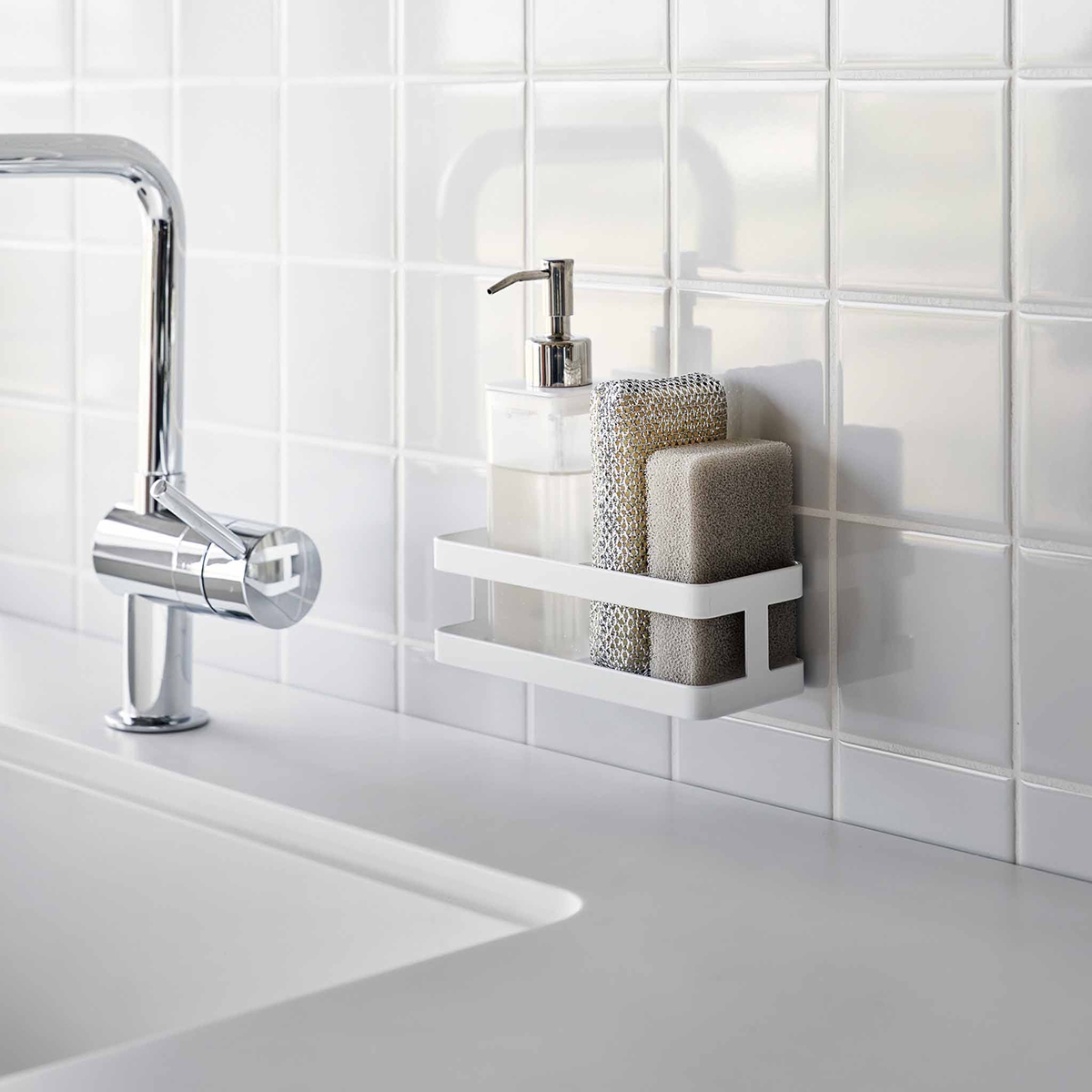 Yamazaki selvklæbende holder til sæbedispenser og svamp. Denne i hvidt blankt metal
