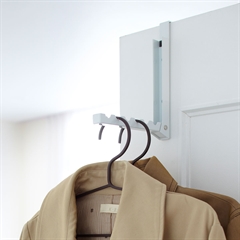 Smart pladsbesparende knagerække fra Yamazaki. Hæng den over døren og når du har brug for den - klap den ud, så har du plads til 6 bøjler på knagen.