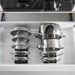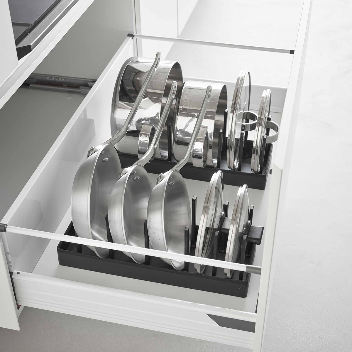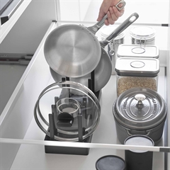 En smart opbevaringsløsning til organisering og opbevaring af grydelåg køkkenskufferne eller på hylden.