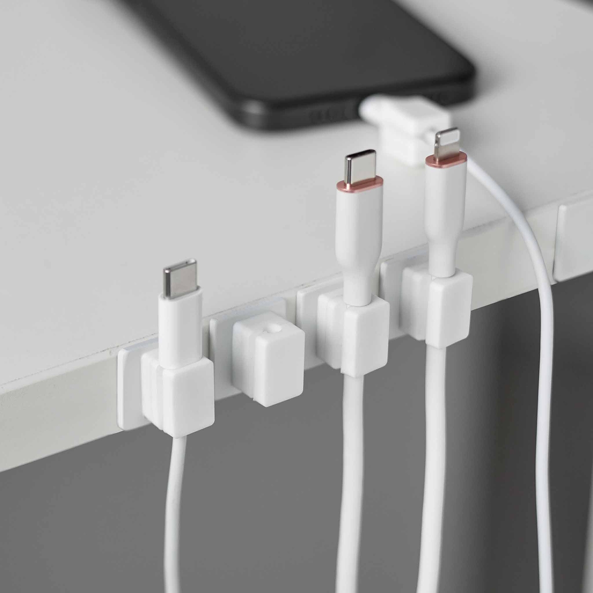 Pakke med fem kabelholdere, så du kan få styr på dine ledninger på kontorbordet eller i bilen.