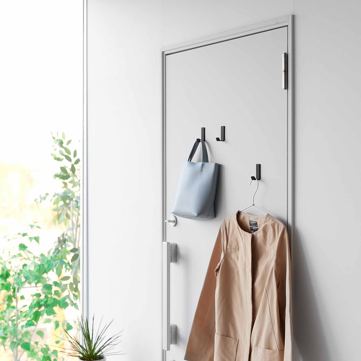 Stilrene og minimalistiske magnetiske knager fra Yamazaki i stål der er lakeret sorte