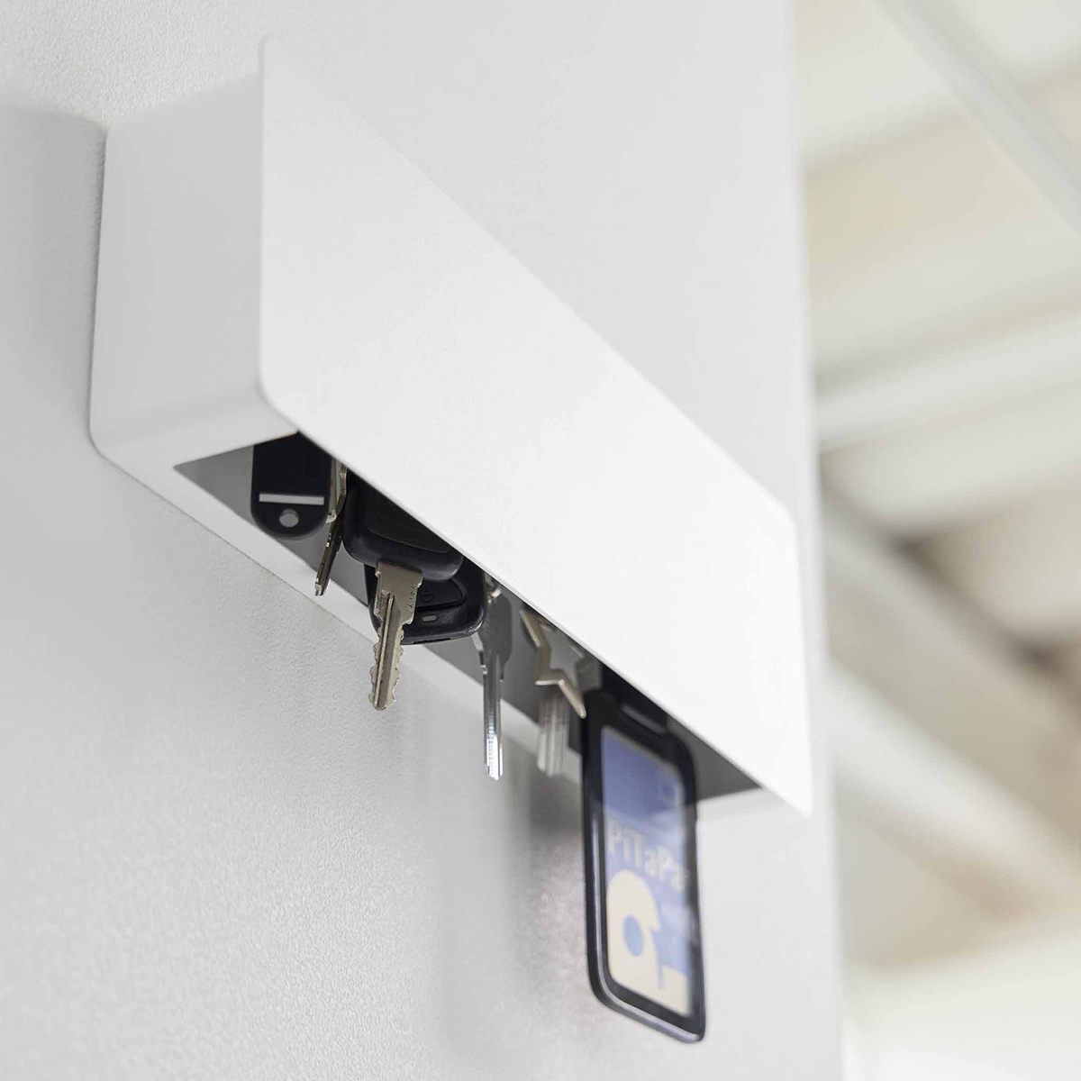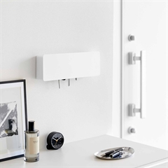 Nøglebræt i et stilrent og minimalistisk design fra Yamazaki. Nøglebrættet skjuler dine nøgler på en elegant måde. Nøgleskabet er lavet af metal der er pulverlakeret i en mat hvid nuance. Kan klappes op, når du skal bruge en nøgle. Skruer til montering på væggen medfølger