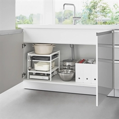 Brug den lille reol under vasken i køkkenet, på badeværelset eller i tøjskaber for ekstra udnyttelse af pladsen i de ellers små trange rum.