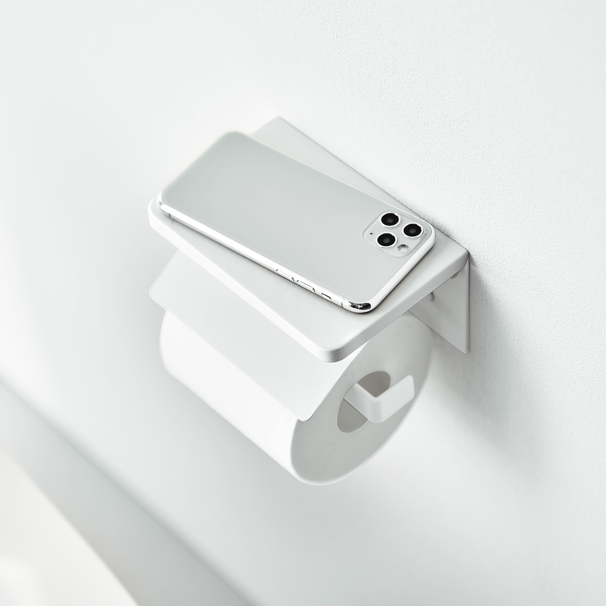 yamazaki toiletrulleholder i hvidt metaltoiletrulleholder med hylde til 1 toiletrulle
