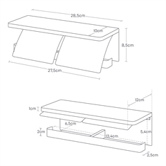 En praktisk toiletrulleholder med plads til to ruller. Derudover er der en hylde på toppen til opbevaring.