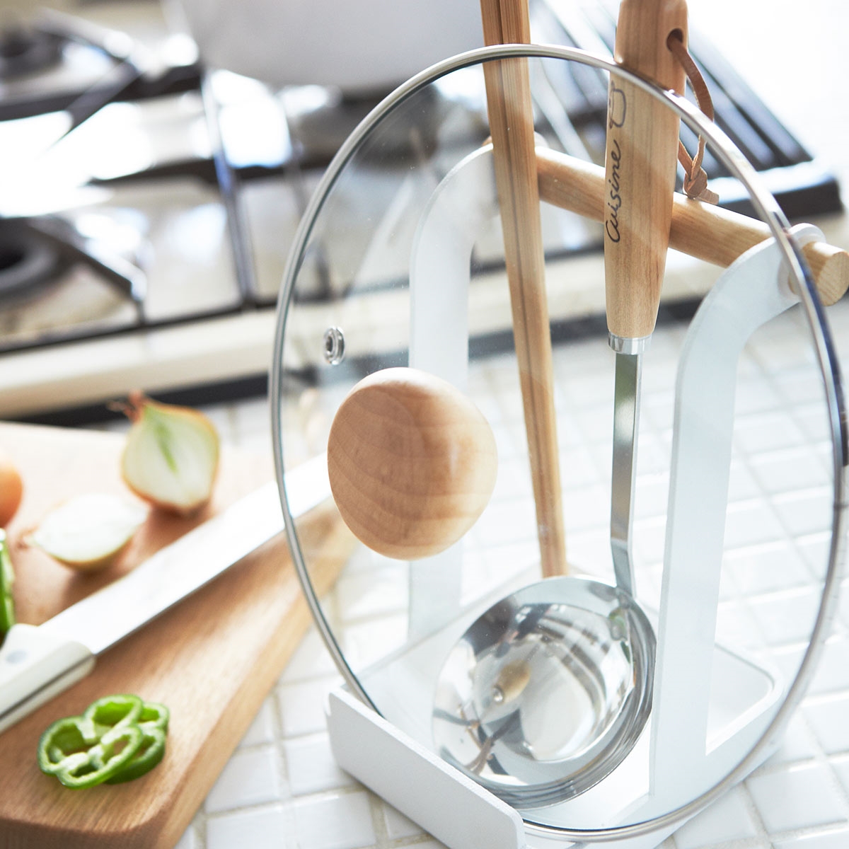 Yamazaki Tosca holder til køkkenet er en smart holder til grydelåg og/eller grydeskeen.