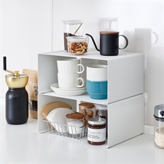 Optimer din opbevaringsplads i køkkenet og skab overblik og et pænt organiseret køkkenbord med denne stabelbare hylde til bordet.