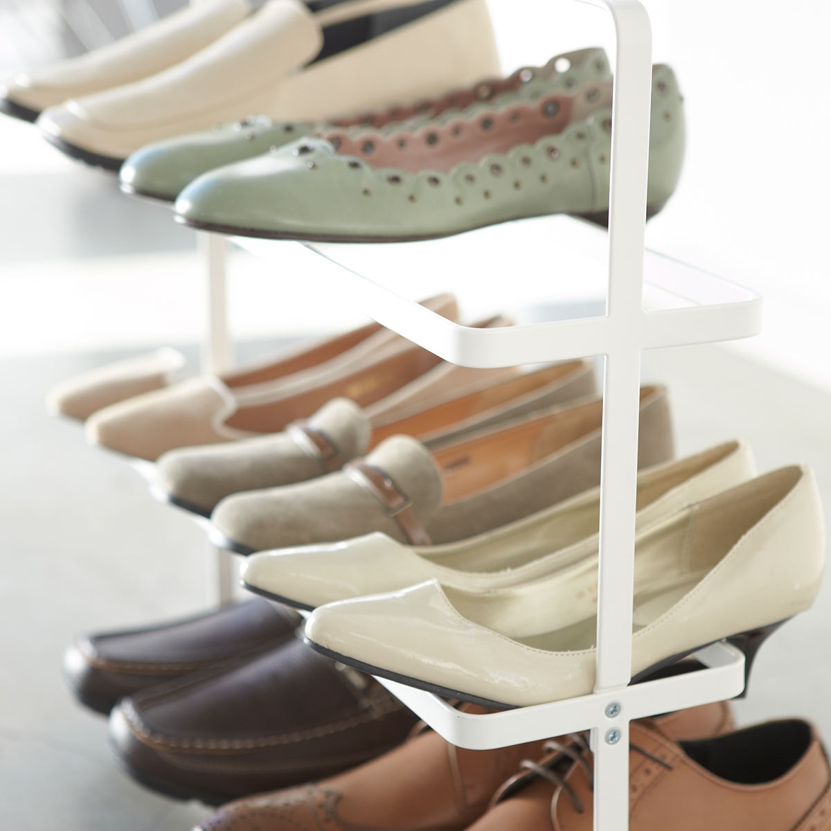 Praktisk skoreol fra Yamazaki du nemt kan flytte rundt med. Skoreolen kan indeholde 2-3 par sko pr. hylde, og der er 3 hylder ialt. Brug den i entréen til de sko familien bruger dagligt.