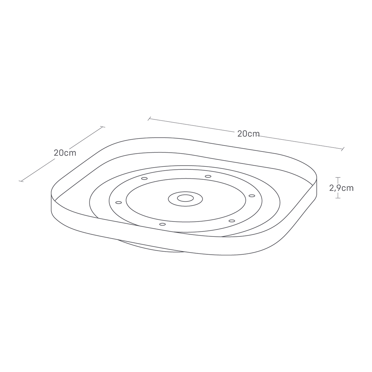 Fadet er måler 20x20 cm. og kan dreje 360 grader rundt.