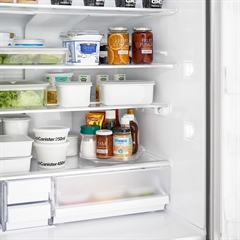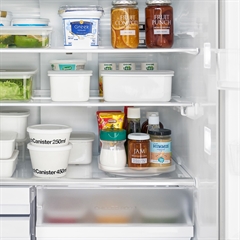 Drejefadet er perfekt til organisering af sovse og tilbehør i køleskabet. Brug det f.eks til alt dit ketchup, mayo og dressing, så er de alle samlet på samme hylde, og du skal ikke flytte andre ting, for at nå den du gerne vil have.