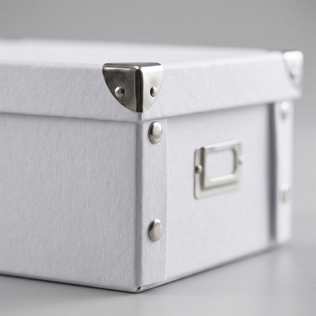 Æske i kraftigt pap fra Zeller. Æsken foldes nemt når du får den ved hjælp af trykknapper. Æsken har låg og forrest på enden sidder et mærke, så du kan skrive indholdet ned.