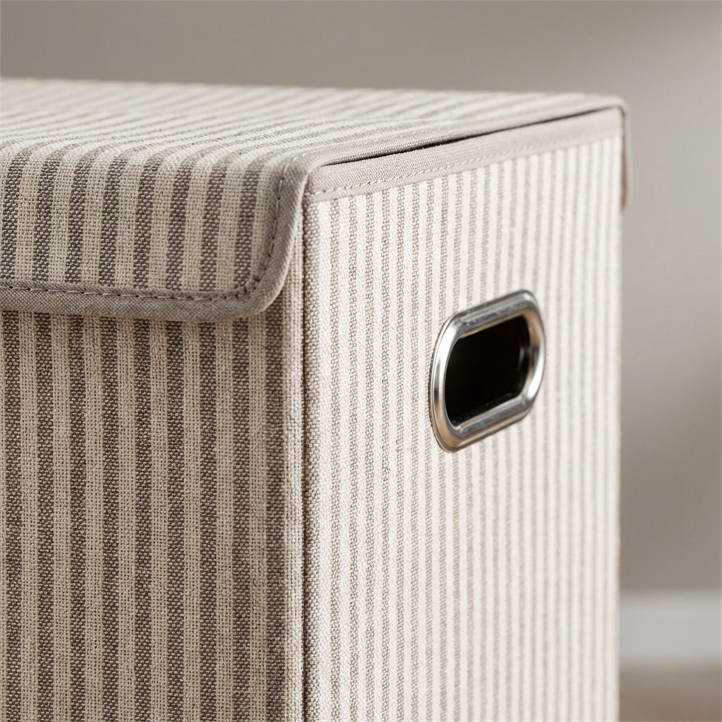 Enkel vasketøjskurv i non-wowen stof i polyester omkring en kerne af kraftigt pap.