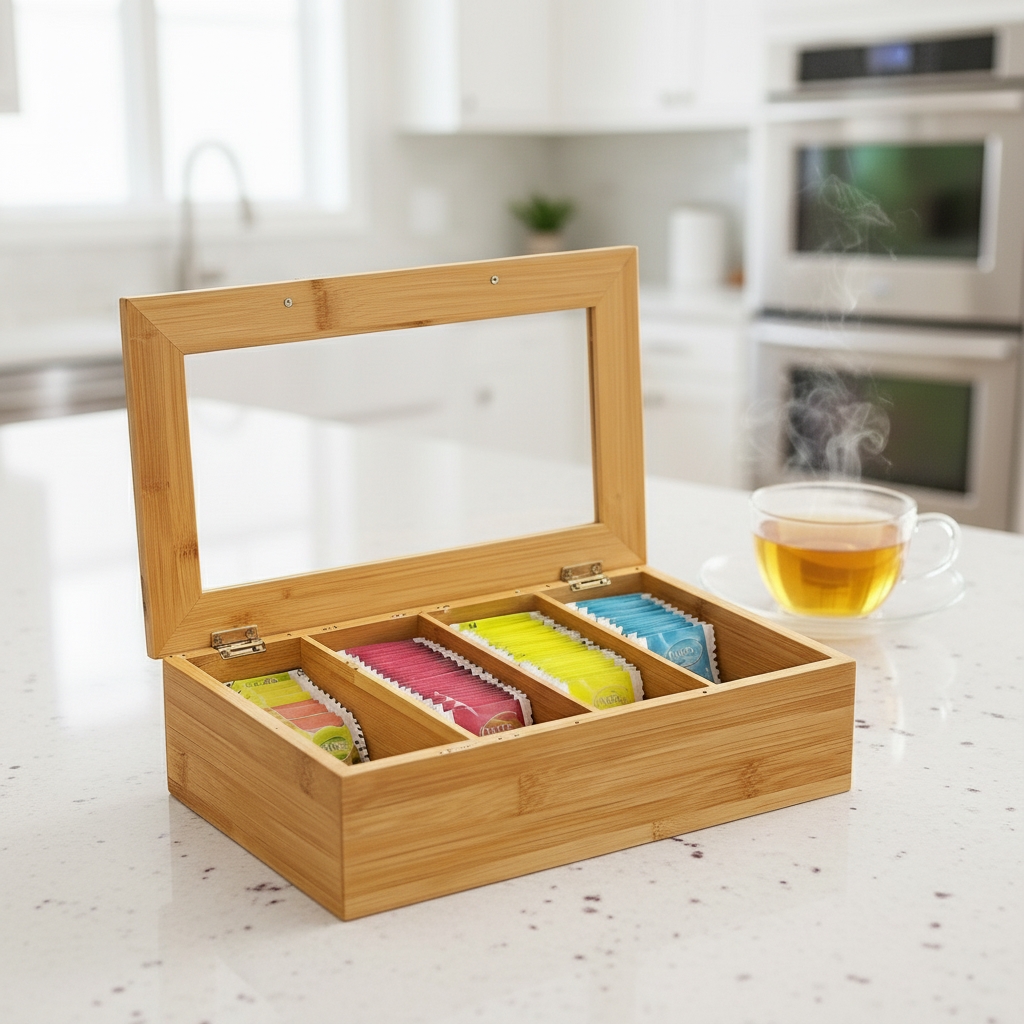 Zeller Ruminddelt kasse i bambus til Tebreve
