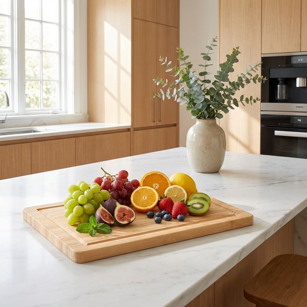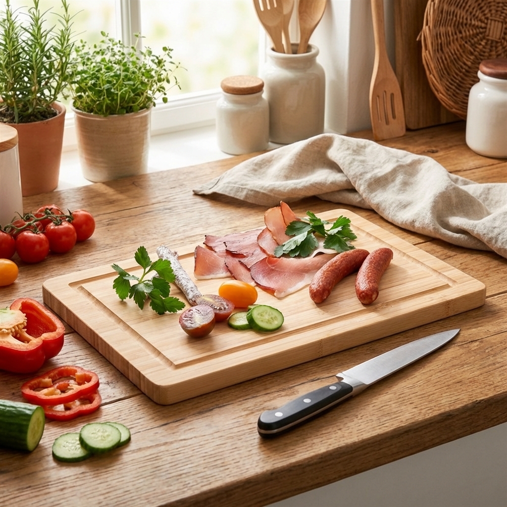 Bambus er hurtigtvoksende materiale der er naturligt antibakterielt og derfor meget velegnet til skærebræt. Samtidig er det blødt, så det er skånsomt for knive.
