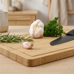 Bambus er hurtigtvoksende materiale der er naturligt antibakterielt og derfor meget velegnet til skærebræt. Samtidig er det blødt, så det er skånsomt for knive.