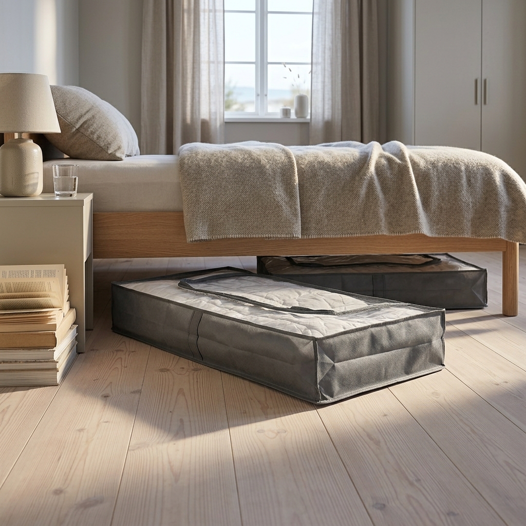 En praktisk opbevaringspose til f.eks. at sætte ind under sengen for ekstra opbevaringsplads i hjemmet.