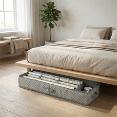 En praktisk opbevaringskurv til at sætte ind under sengen så gavepapiret er samlet ét sted men stadig pakket pænt af vejen.